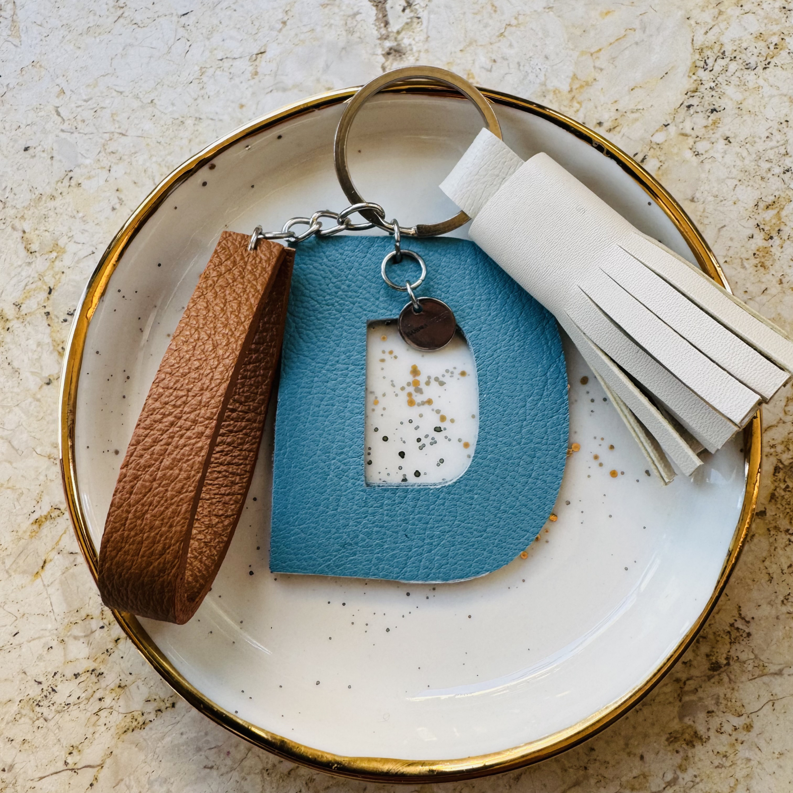 Breloc din piele naturala creat manual cu ciucure si litera D. Poate fi purtat la geanta, la chei, este simplu, dar elegant, culori usor de asortat. Poate fi un cadou inedit pentru cineva drag.