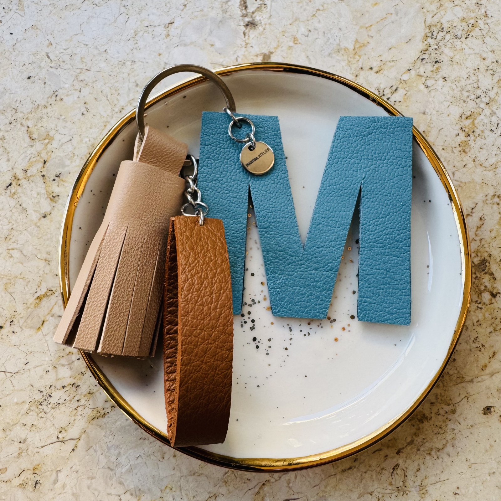 Breloc din piele naturala creat manual cu ciucure si litera M. Poate fi purtat la geanta, la chei, este simplu, dar elegant, culori usor de asortat. Poate fi un cadou inedit pentru cineva drag.