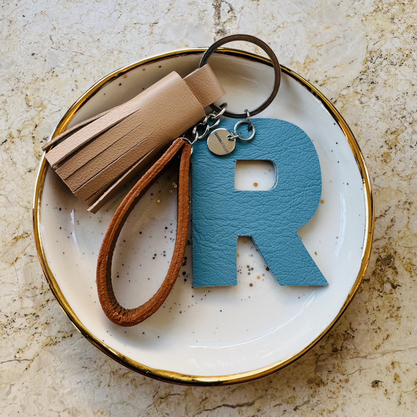 Breloc din piele naturala creat manual cu ciucure si litera R. Poate fi purtat la geanta, la chei, este simplu, dar elegant, culori usor de asortat. Poate fi un cadou inedit pentru cineva drag.