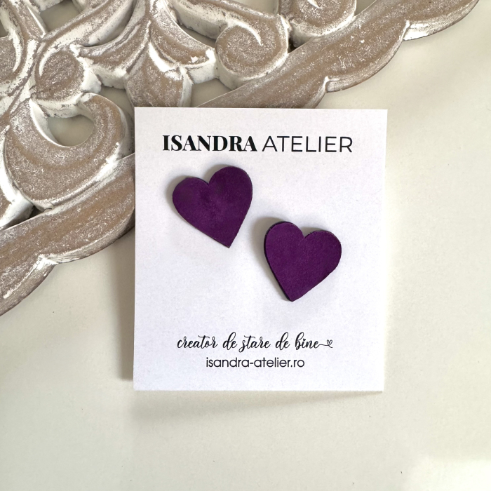 Cercei piele inimioara mica mov inchis