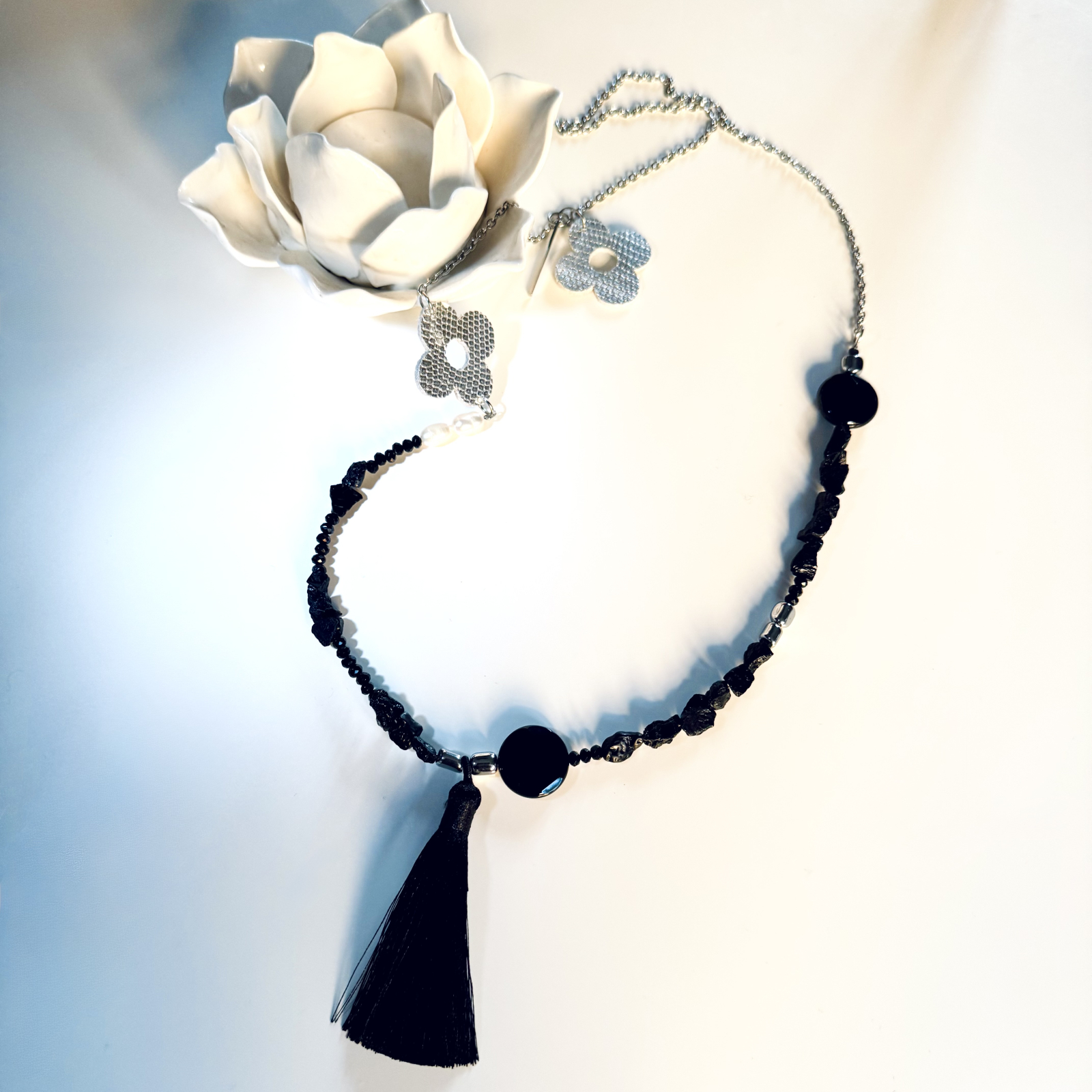 Colierul are un ciucure matasos si delicat de culoare neagra.