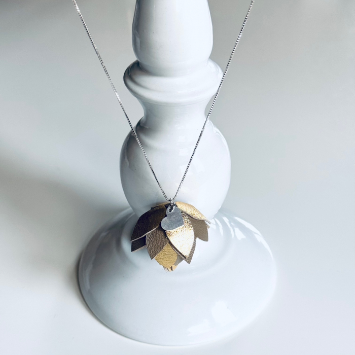 Lant de argint de 45 de cm si ghinda creata manual cu charm argint